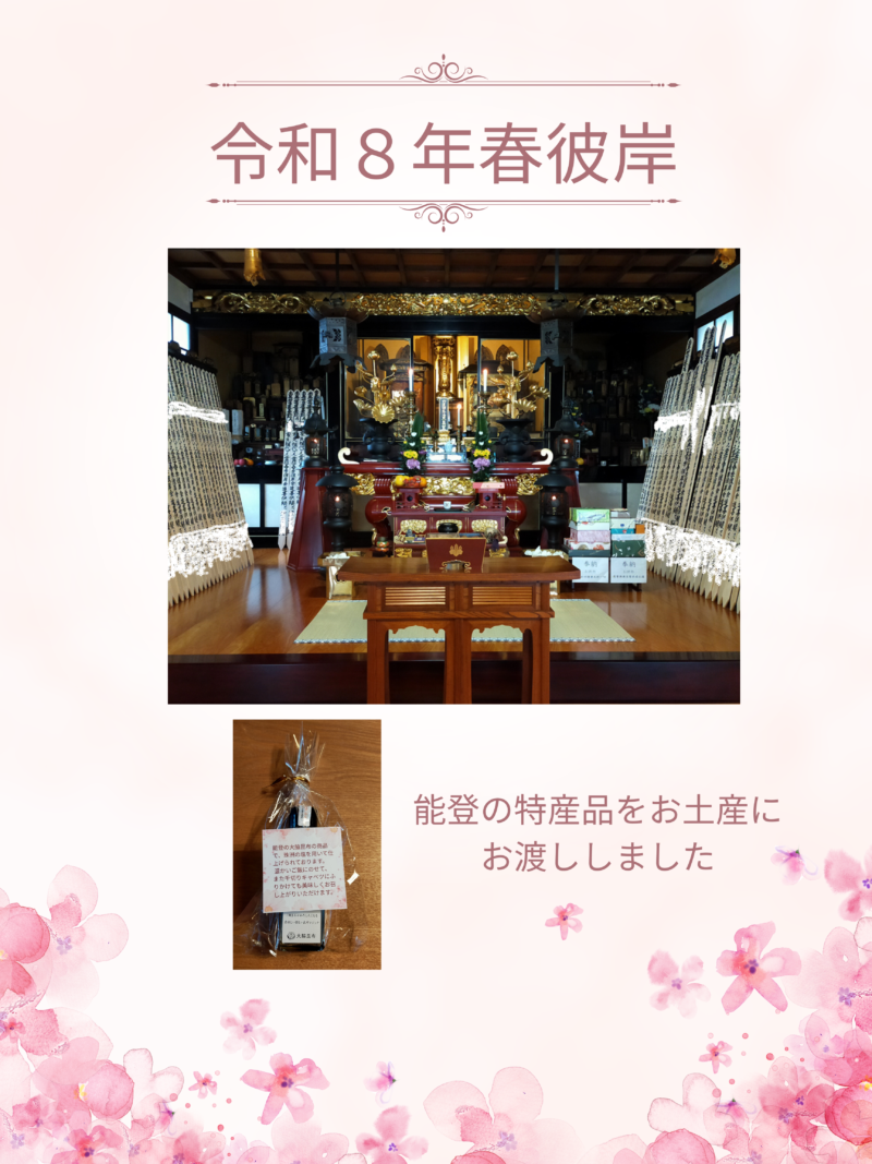 2026年3月21日 / 最終更新日時 : 2026年3月21日 yosho 未分類 お知らせ | 令和8年春彼岸法要のご報告 春彼岸(春分の日) 当日は雨の中、多くの方にお参りいただき、穏やかなひとときの中で春彼岸法要を行うことができました。 →詳細は妙福寺の行事へ \ 最新情報をチェック / コメントを残す コメントをキャンセルメールアドレスが公開されることはありません。 ※ が付いている欄は必須項目ですコメント ※ 名前 ※ メール ※ サイト 次回のコメントで使用するためブラウザーに自分の名前、メールアドレス、サイトを保存する。 上に表示された文字を入力してください。